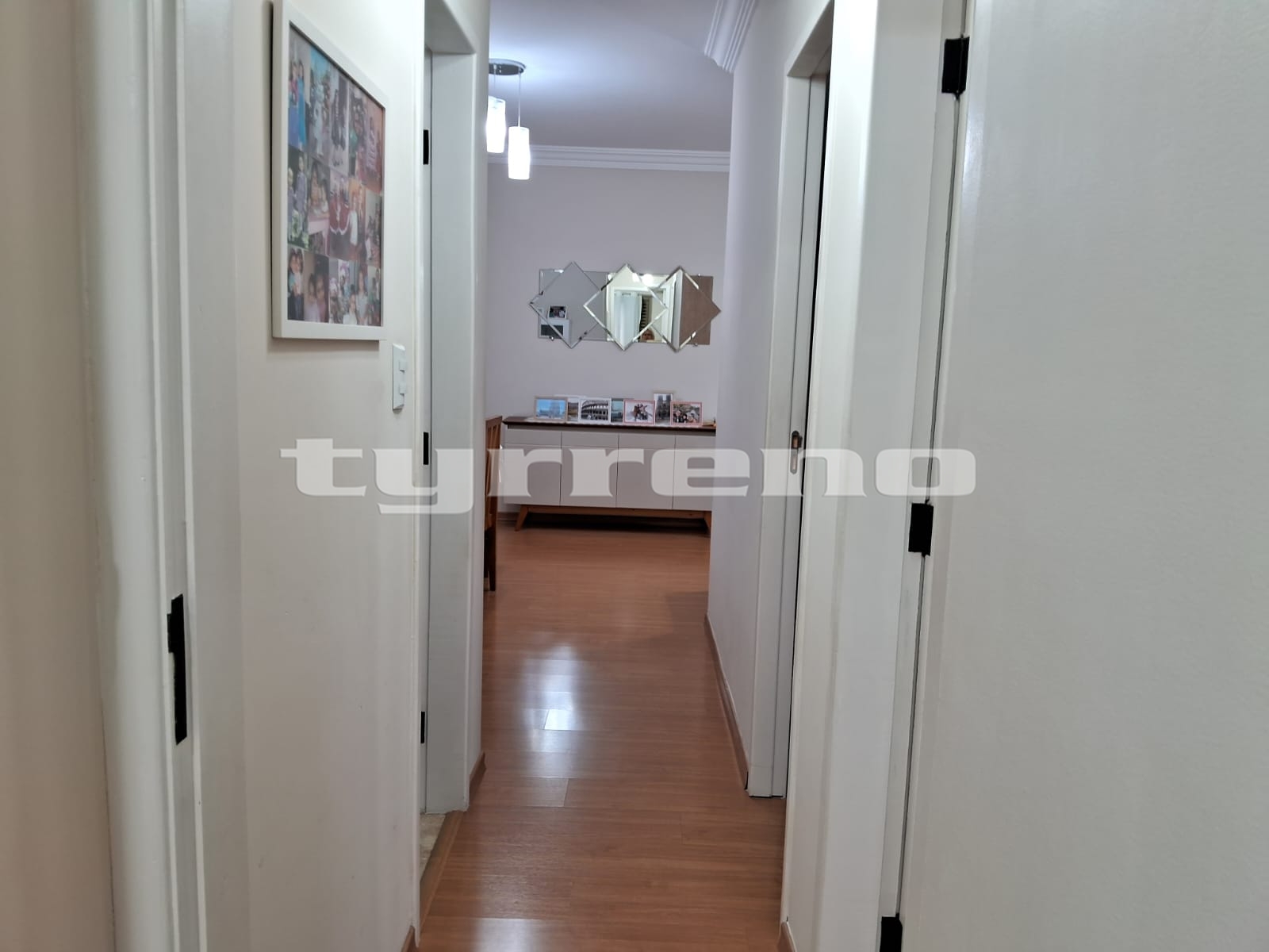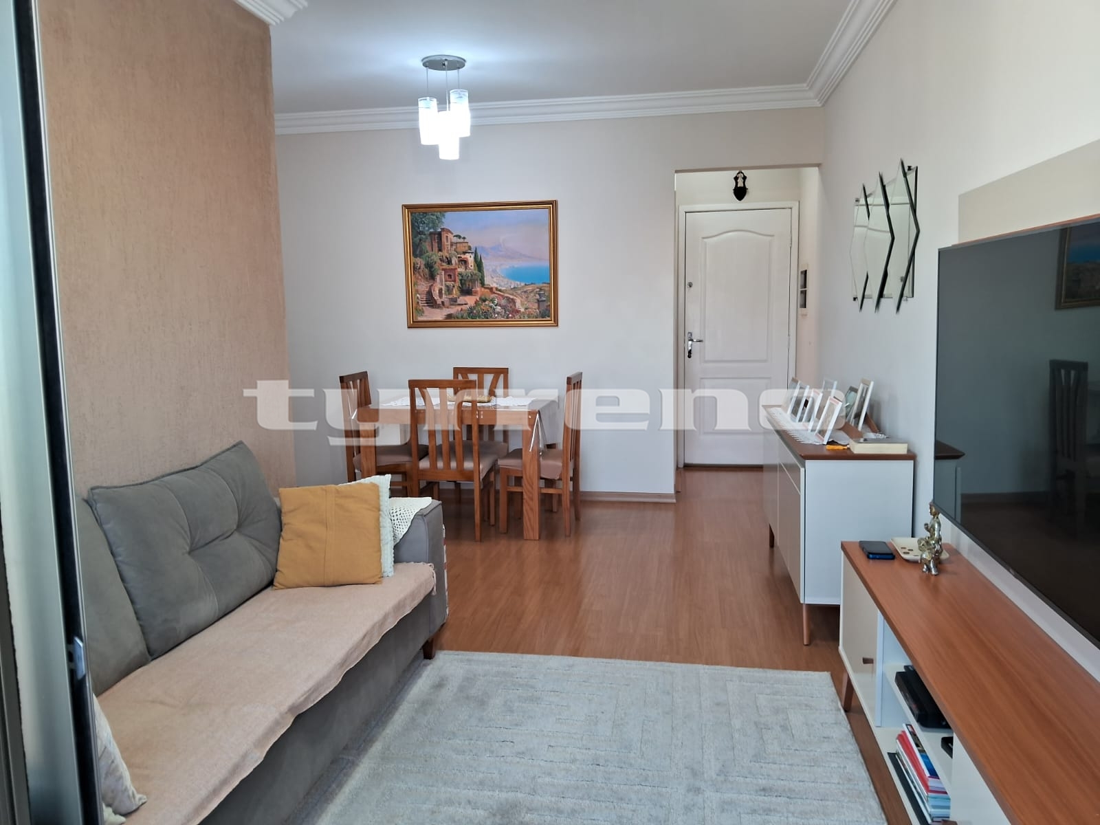Piso laminado e teto com acabamento em gesso