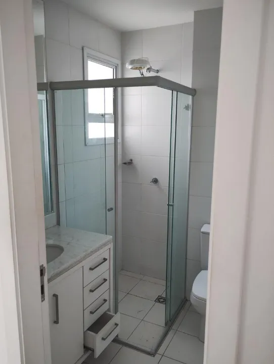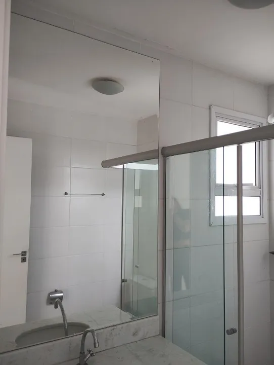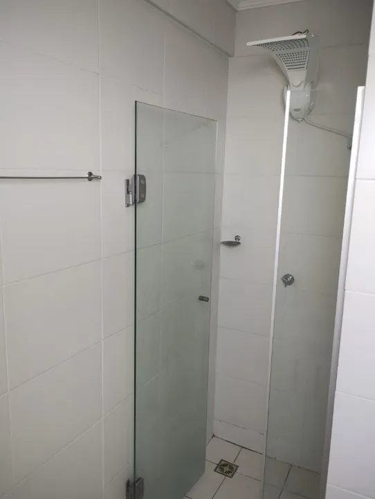 - Wc social com moveis planejado, espelho grande na pia, box e chuveiro elétrico,