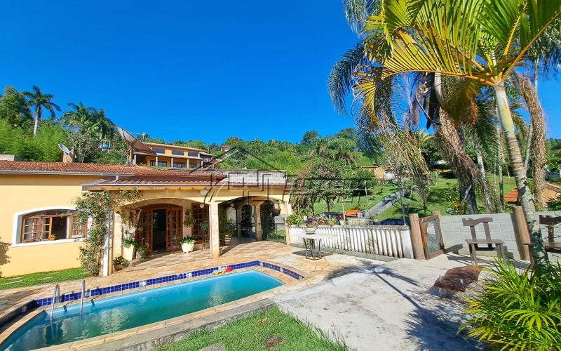 20Linda casa térrea em condomínio fechado, tipo chácara. Muito verde, linda paisagem e muita tranquilidade.São 2.733,00 m² de Terreno.Casa com 3 dormitórios, sendo 3 suítes, armários no quarto do casal, banheiro social, sala de TV, sala de jantar, sala de visita, cozinha ampla com despensa, lavanderia com quintal reservado, área gourmet completa com piscina, forno de pizza e churrasqueira. Amplo quintal gramado. São 6 vagas de garagem cobertas e vários descobertas.