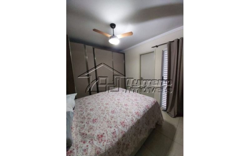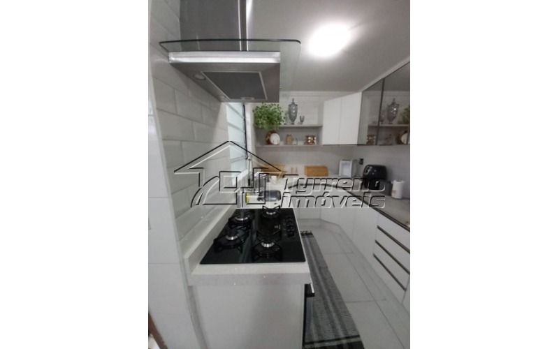 Sobrado em condomínio fechado com 3 quartos, sendo uma suíte, 2 wcs, área de serviço, sala para 2 ambientes, piso porcelanato, armários embutidos nos dormitórios, cozinha e banheiros e 2 vagas de garagem.