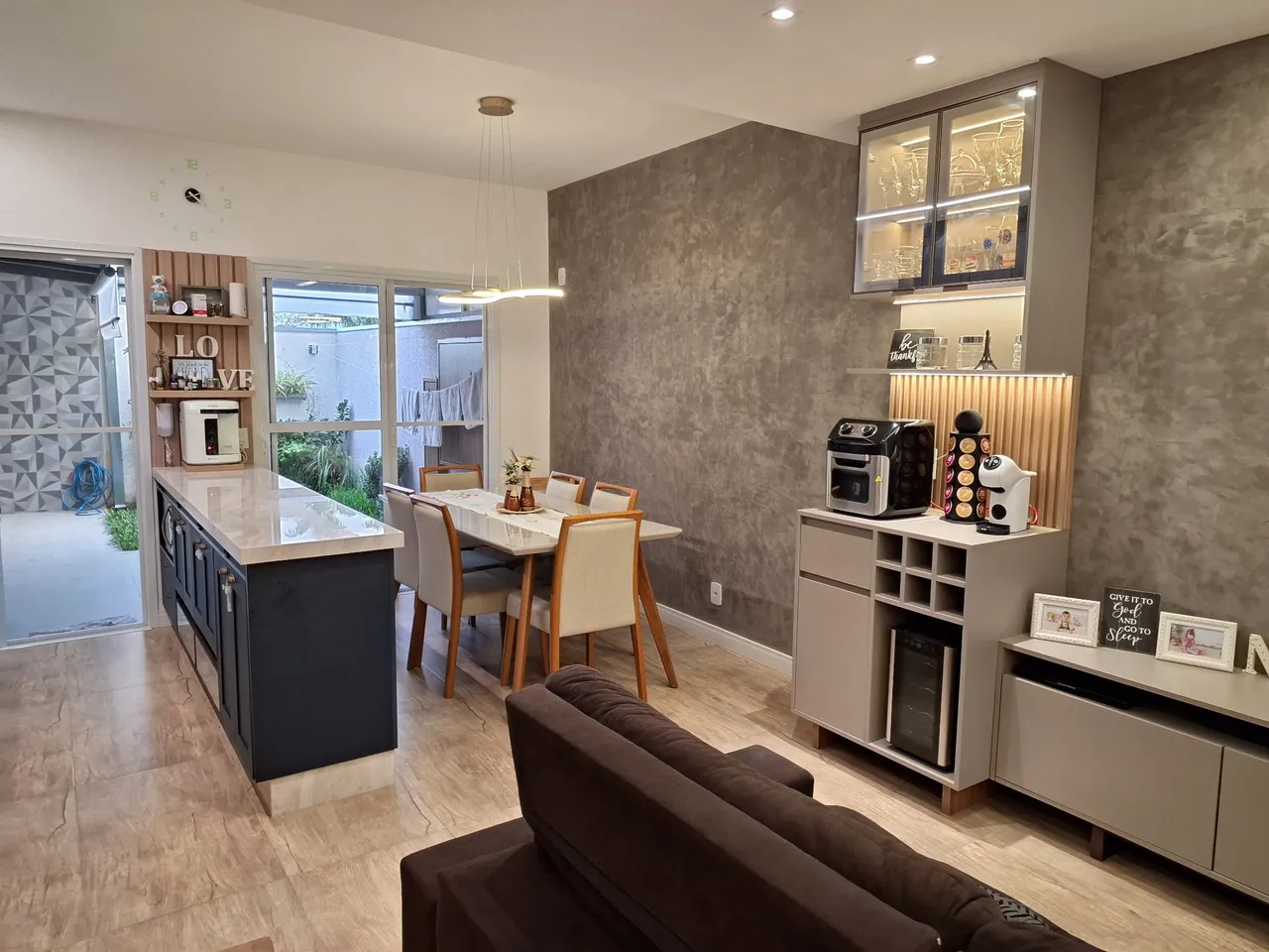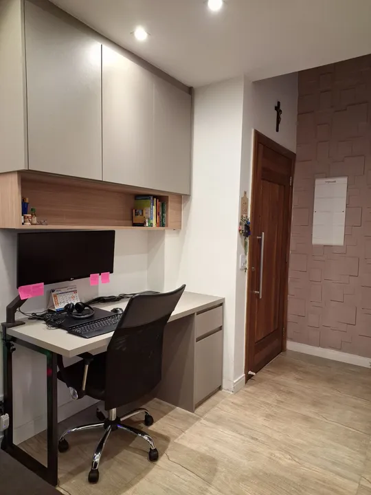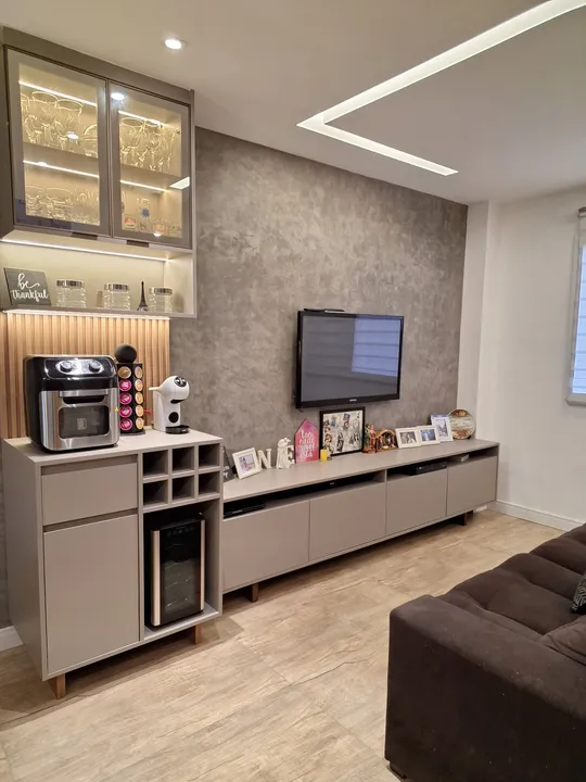 - Sala com escritório e cristaleira planejada, incluindo espaço para adega e vinhos.