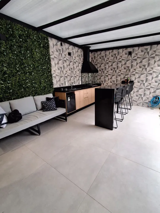 - Área Gourmet Externa de 23m², ideal para momentos de lazer, com mesa retrátil para 10 pessoas, sofá, churrasqueira, cooktop de 2 bocas e balcão de 2.7 metros com 4 cadeiras confortáveis,