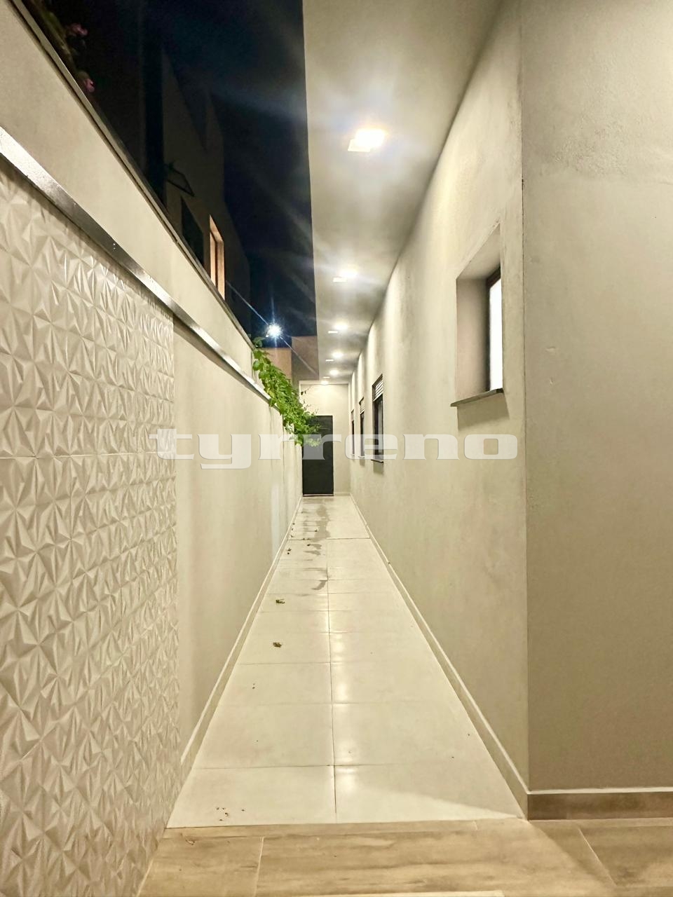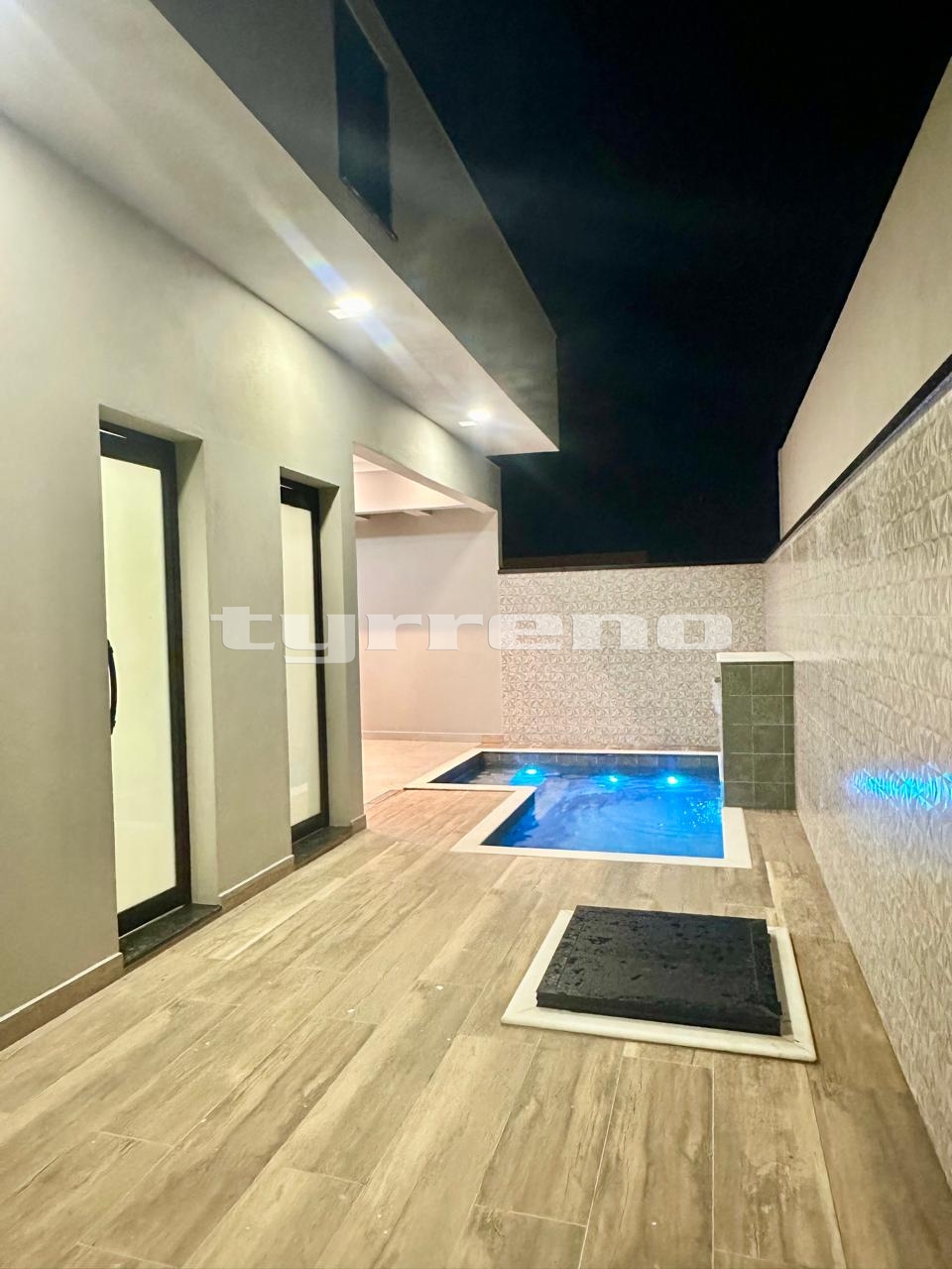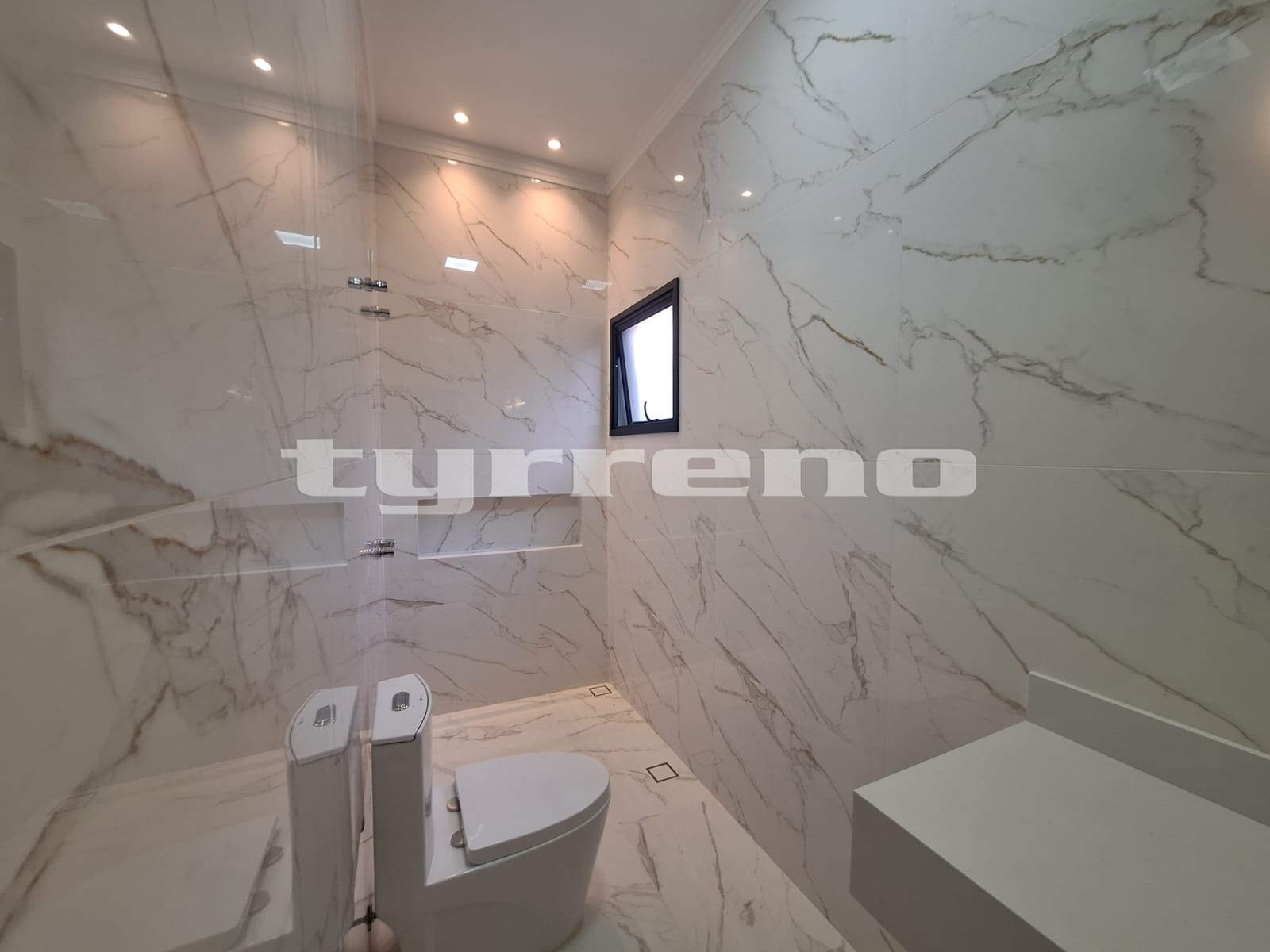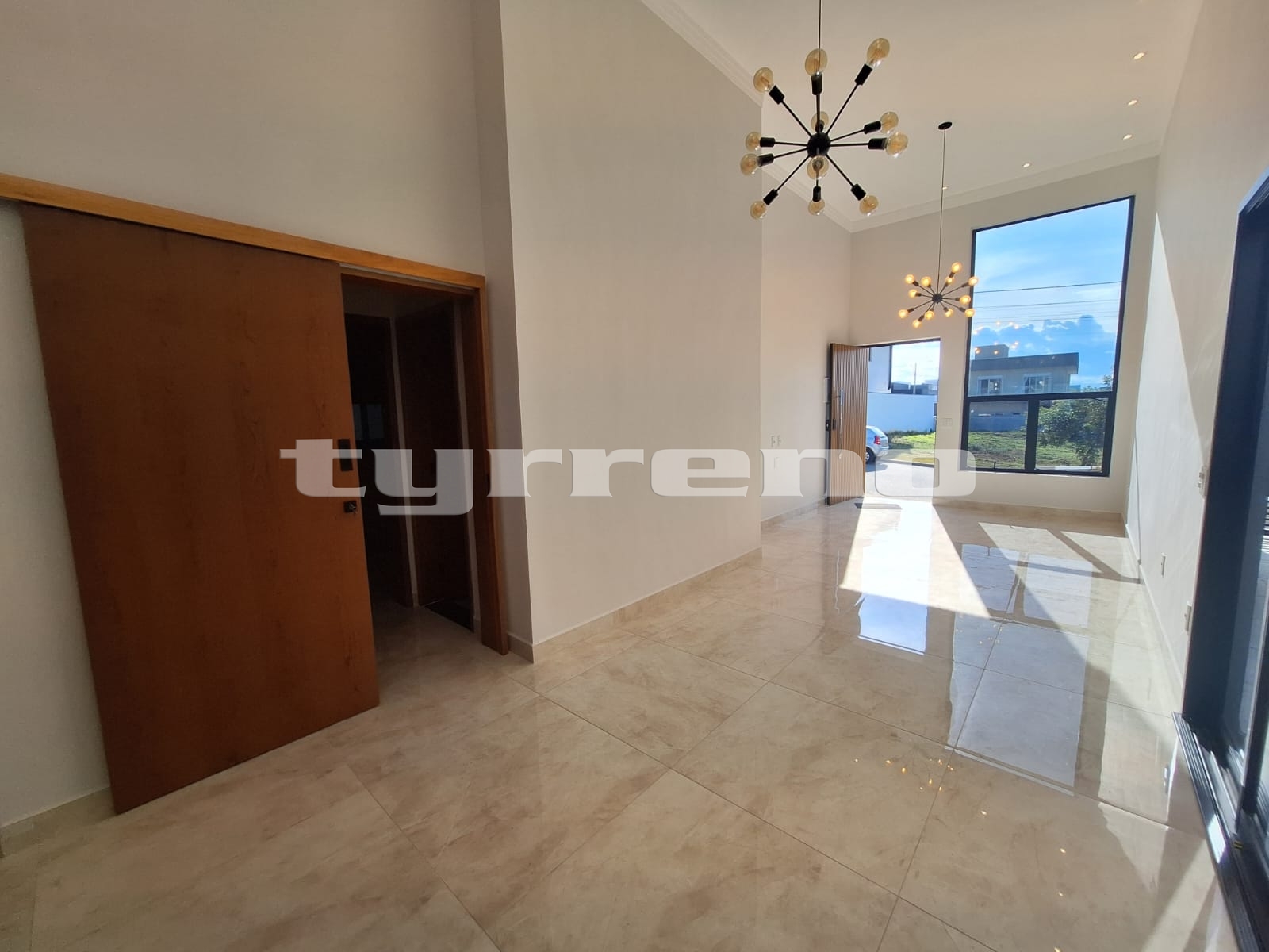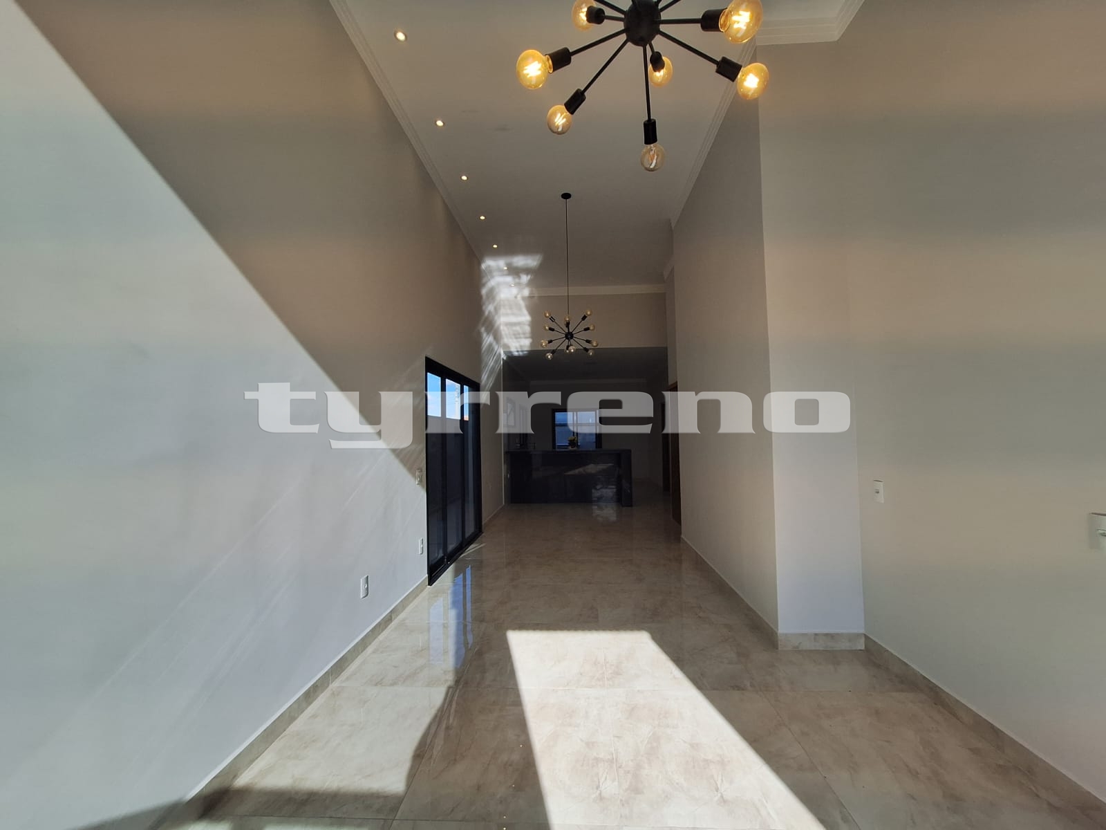 A casa toda em porcelanato na área interna e externa, bancada, pia e lavatórios em granito, conta com um projeto luminotécnico super moderno, piscina em concreto armado com cascata e LED, painel em alumínio ripado na parede da garagem como consta no projeto, na cor amadeirado acompanhando o modelo e cor da porta de entrada. Sendo três dormitórios, um deles é uma suíte com closet, banheiro social, sala de estar, sala de jantar, cozinha, área gourmet com churrasqueira integrada próximo a piscina, banheiro externo, lavanderia, ducha, garagem coberta para dois automóveis. Esquadrias pretas linha premium.