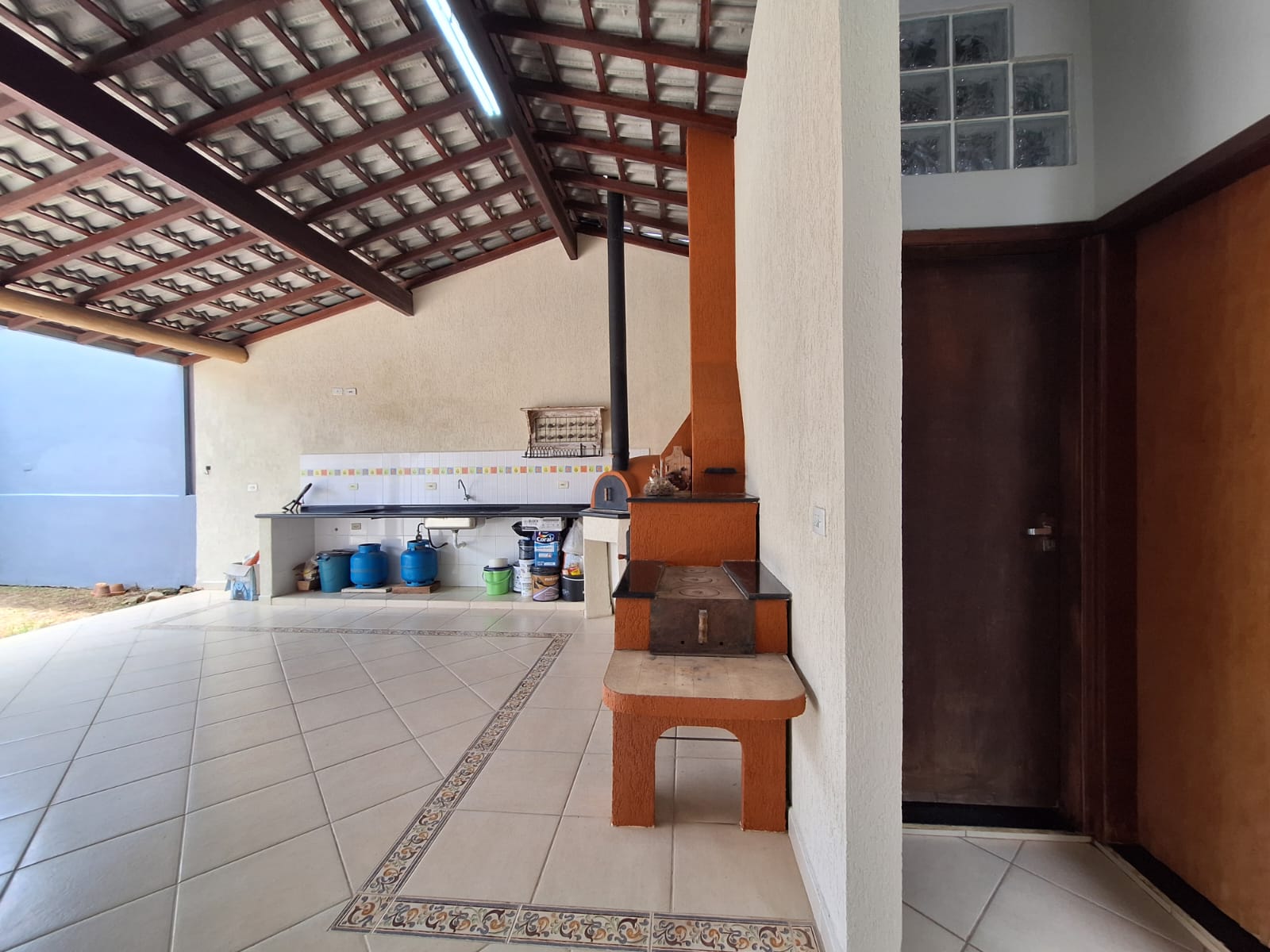 Área gourmet completa com churrasqueira, forno e fogão a lenha.