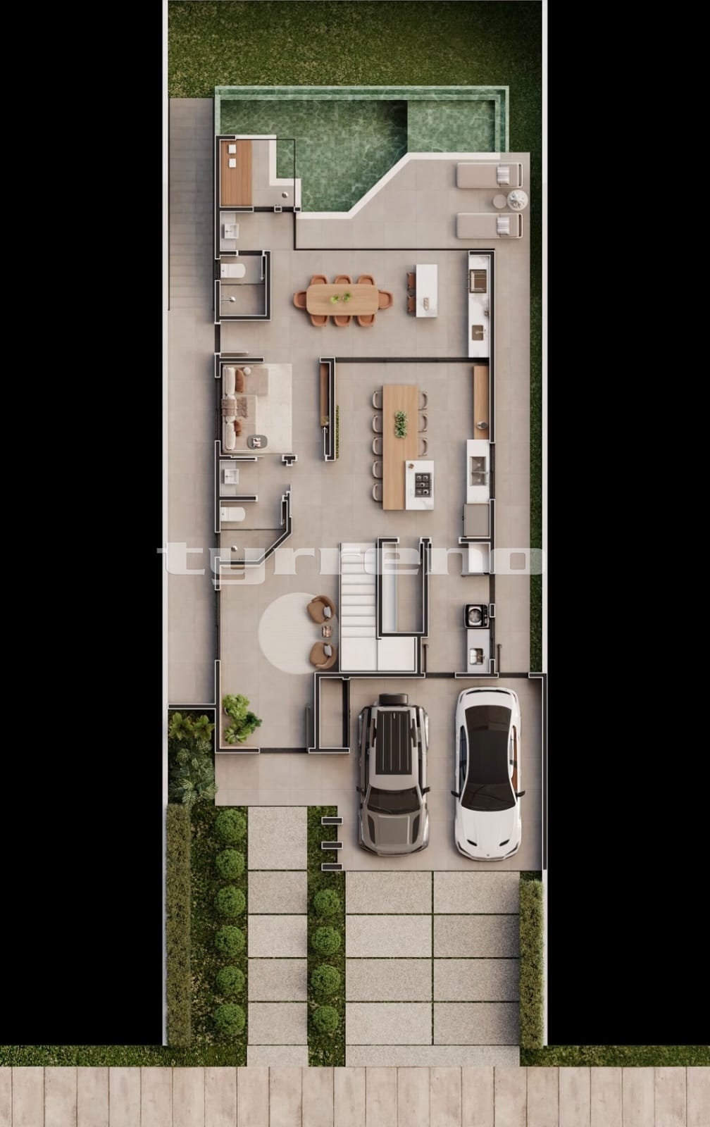 Essa casa fica em um terreno declive que permite ter uma vista livre e permanente.