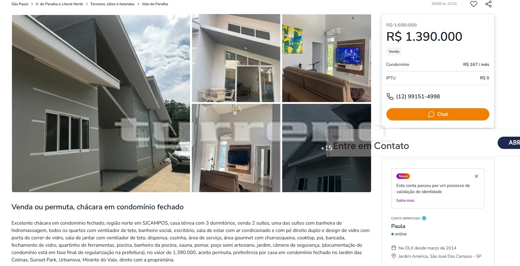 Aceita permuta – preferência por casa em condomínio fechado nos bairros: Jardim das Colinas, Sunset Park, Urbanova ou Mirante do Vale