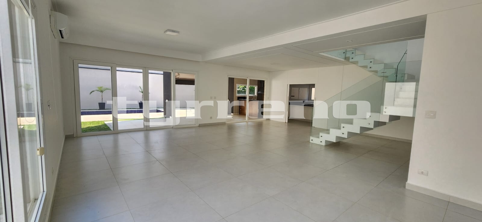 Ampla sala com ambientes integrados e ar-condicionado