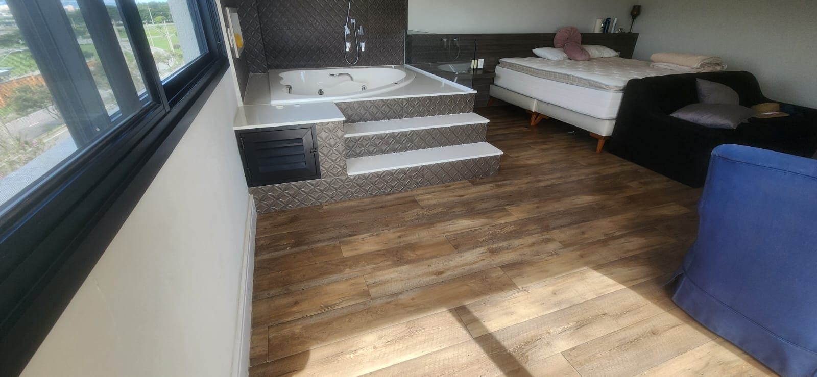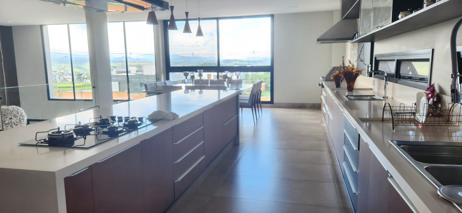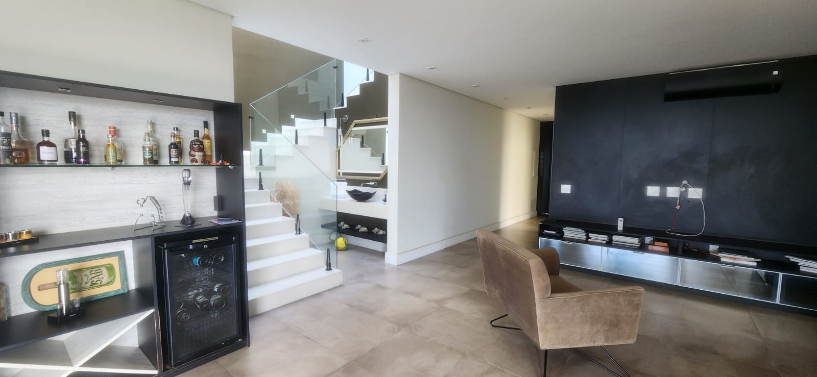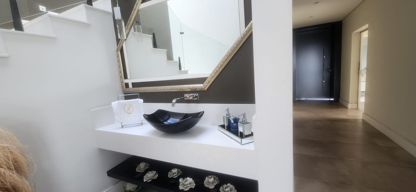 - 4 suítes no Piso Superior sendo uma máster com closet, hidromassagem, sacada privativa e banheiro luxuoso com cuba dupla.